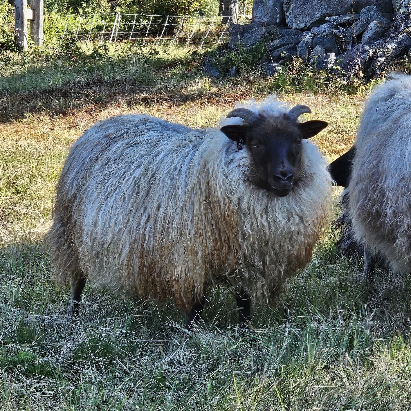 Black grey badgerface twin out of Ilka and Olov. Nice balanced body front to back. Carries moorit. Great parasite resistance, excellent mothering, beautiful udder.
